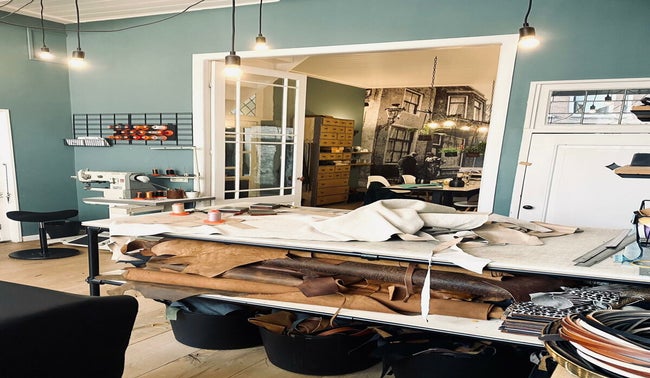 • In elkaar stikken van de leren shopper